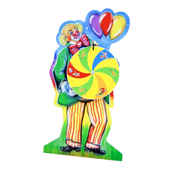 Riesiges, werbewirksames Glücksrädern mit der Außenkontur eines Clowns. Die Rückwand besteht aus Kunststoff bzw. Aluverbundplatte weiß, schwer entflammbar, komplettes Glücksrad ist für den Innen und Außenbereich entwickelt, es wird kein Holz etc. verwendet, dadurch auch bei Regen und Outdoor einsetzbar! Beklebung der kompletten Werbeflächen mit 4C/6C-digitalgedruckten, schutzkaschierten Aufklebern (das verwendete Schutzlamiant über dem Druck ist absolut kratzfest), Zwei wartungsfreie Hochleistungslager sorgen für einen sauberen Lauf der Glücksradscheibe. Hochwertig gedrehte und durch den neutralen Farbton zu jedem Layout passende Edelstahlstopper (kein Korrodieren oder Abbrechen). Innerhalb kürzester Zeit auf- und abgebaut. Die Werberückwand ist für den besseren Transport in 2 Teile zerlegbar. Die Standsicherheit erhält das Glücksrad durch eine leichte Neigung und den integrierten Klappständer.