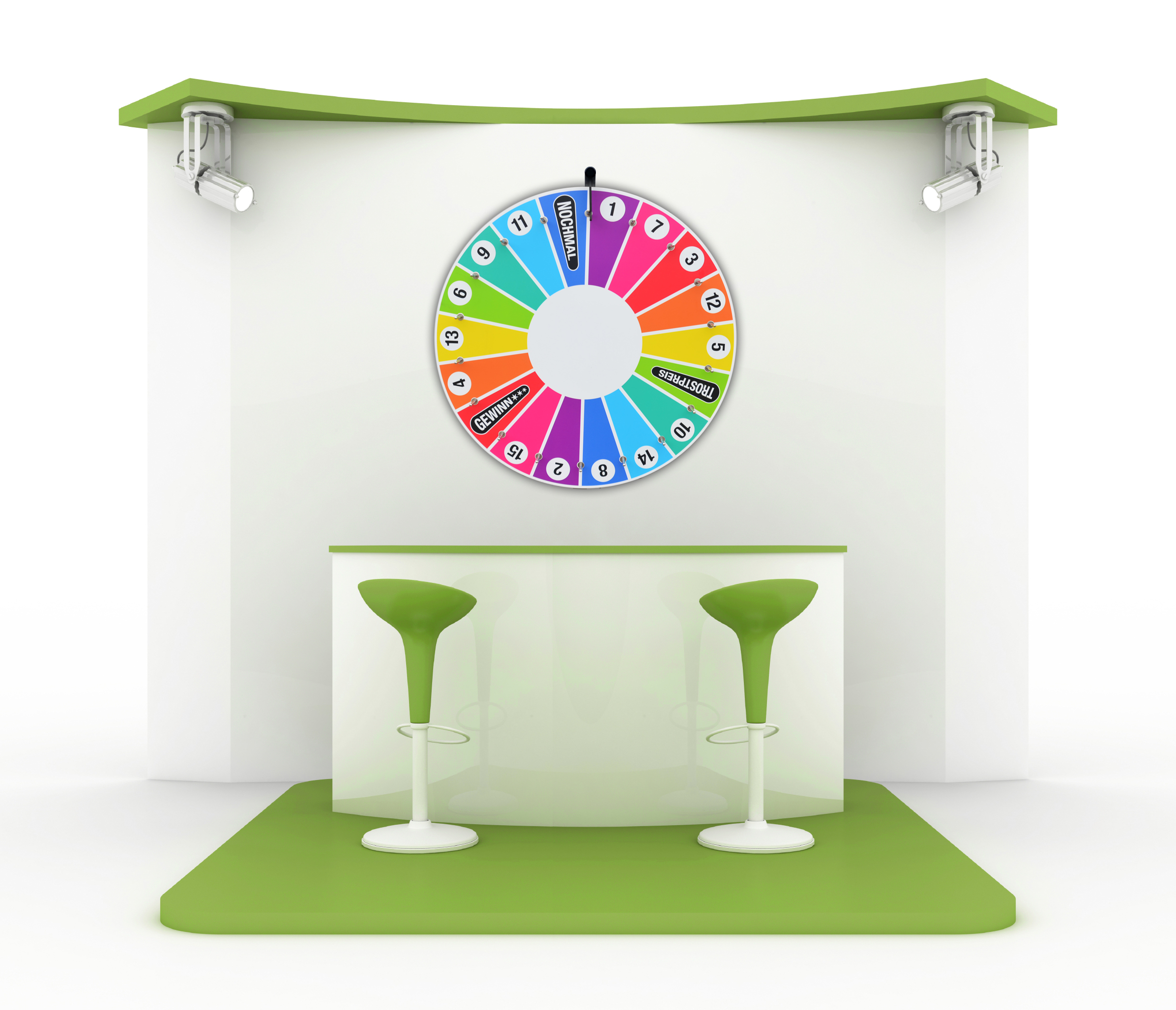 Ein Glücksrad basierend auf unserem Standardmodell "Premium" mit Scheibendurchmesser 90 cm,